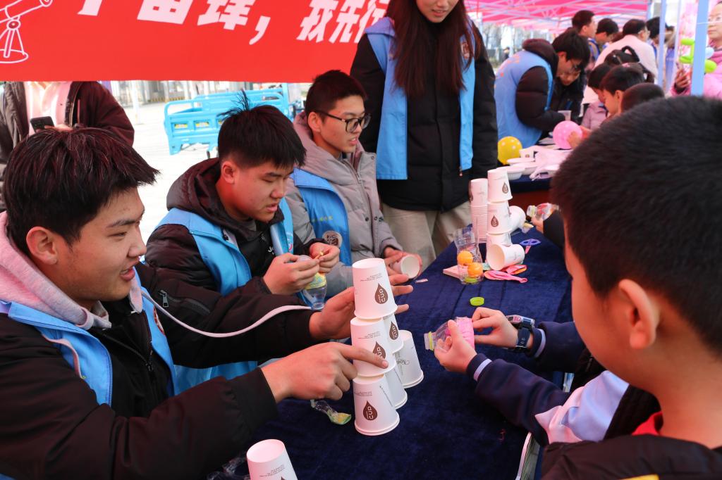 在大学生活动中心开展学雷锋志愿服务主题活动。活动面向校内教职工子女及周边社区儿童开设志愿服务摊位,同时也吸引了众多在校学生积极参与。