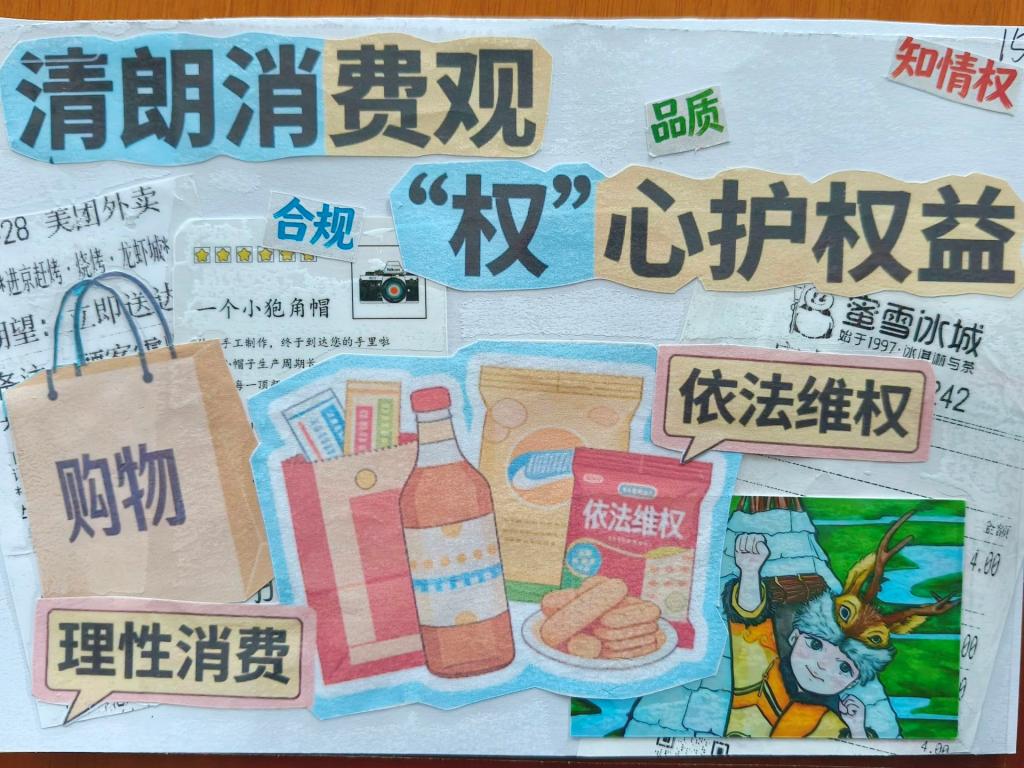 活动现场气氛热烈,参与者运用剪切、拼贴、手绘等多种艺术手法,将日常生活中收集的消费小票、商品包装纸、广告传单、废旧杂志等素材,进行二次加工,从而创造出精美的作品。参与者们围绕“消费者倡议”这一核心主题,传递“理性消费不盲从”“文明消费树新风”“依法维权有保障”等正向、积极的消费理念,通过个性化的创作,不仅提出了独到的消费主张,更将自身对市场环境、消费陷阱、维权途径的理解融入其中。