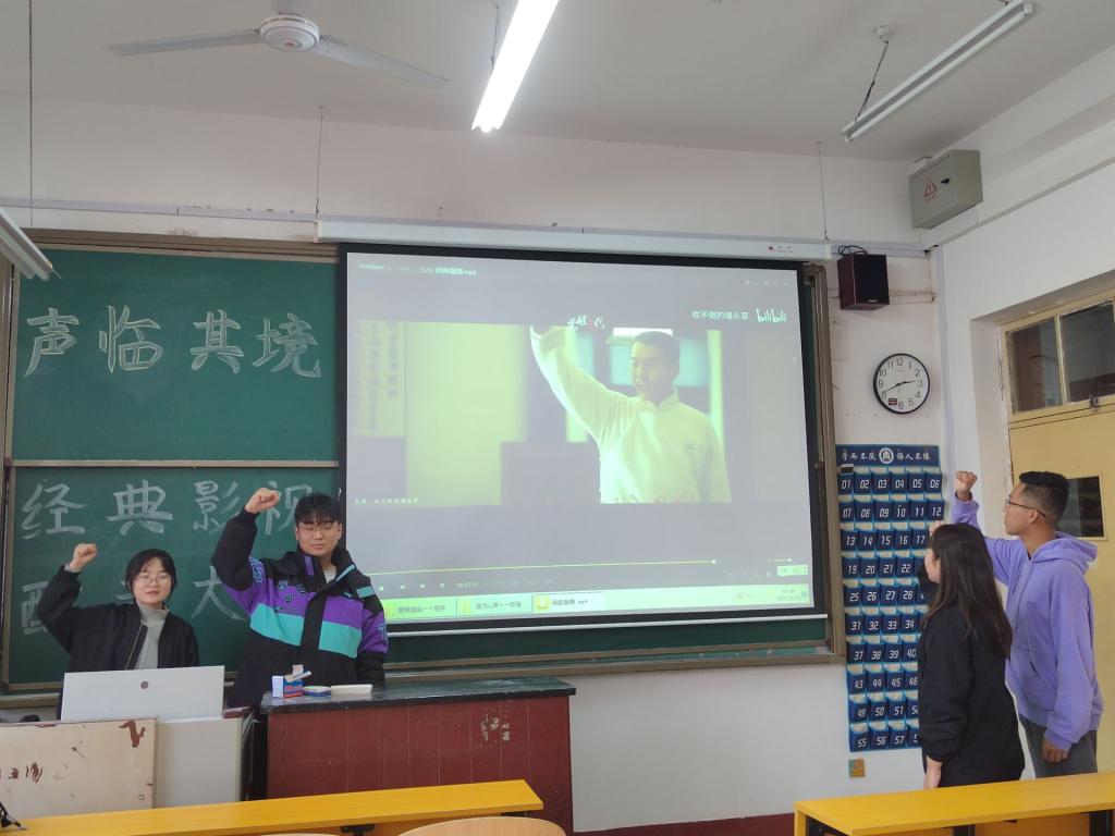 楼101教室举办“声临其境“经典影视配音比赛。本次比赛由勤工助学部常凤环、张若琦担任主持。