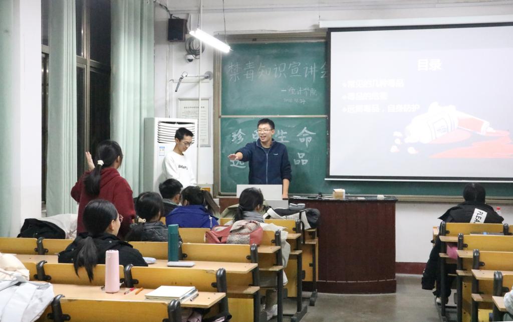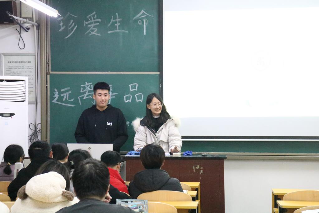 本次宣讲会从常见的毒品种类、毒品的危害和如何进行自身防护三个方面展开宣讲。首先,宣讲人通过视频为同学们介绍了几种常见的毒品,帮助同学们简单地辨认毒品,认清毒品的陷阱,提高警觉性。其次,宣讲人从个人、家庭、社会三个角度给同学们分析了吸食毒品的危害及后果,告诫同学们要认清毒品的危害,有效地引导同学们拒绝和远离毒品。随后,宣讲人着重讲述了大学生如何做好自身防护,提醒同学们提高自我保护能力,保持清醒的头脑,自觉抵制毒品的诱惑,积极参与禁毒斗争。最后宣讲人向全体同学们发出呼吁:时刻保持警惕,珍爱生命,远离毒品。