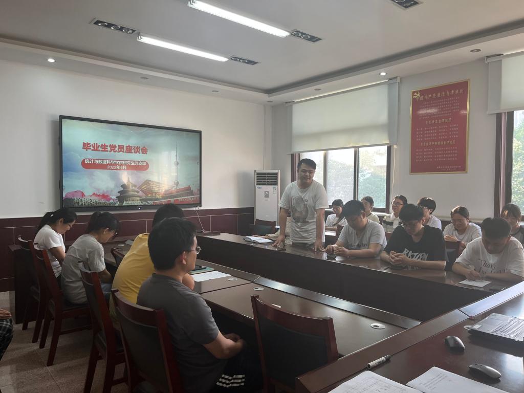 于2022年6月10日在学院213会议室开展了研究生党员座谈会 。此次会议由研究生党支部宣传委员孙涛主持,支部书记尤洪龙老师和全部研究生党员参加会议,10名优秀毕业生先后做汇报,讲述各自的研究生求学经历。
