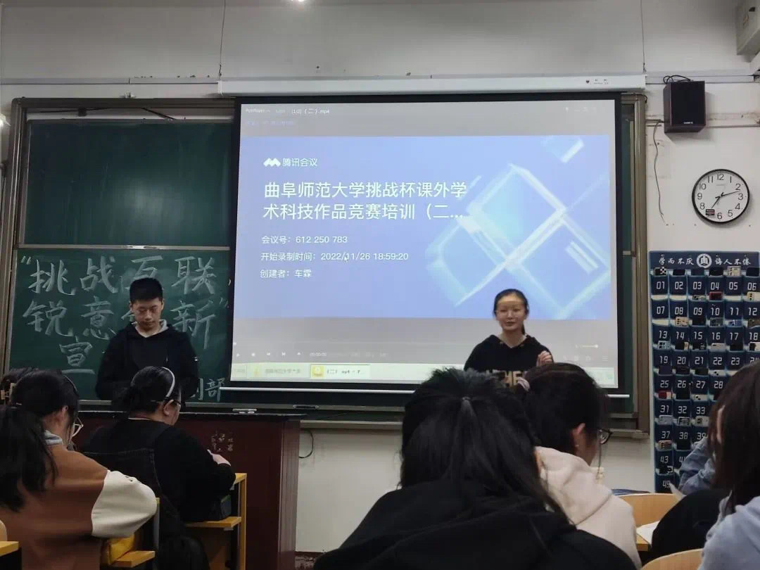于4月2日在2022级固定教室举办“挑战互联,锐意创新”挑战杯暨互联网+大赛宣讲会。活动由动漫a片