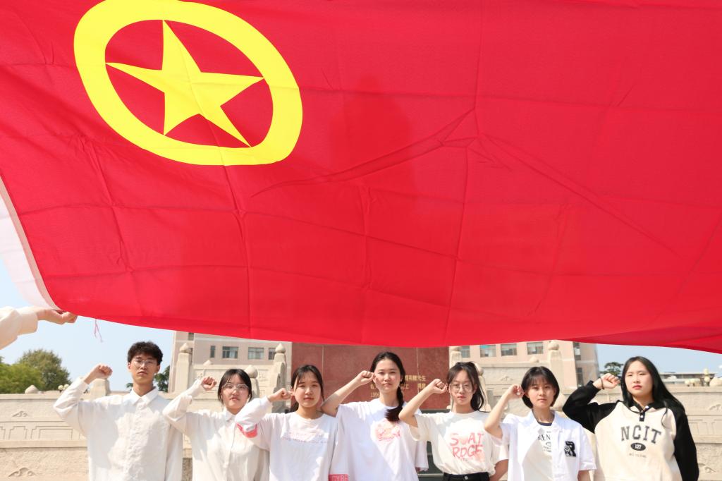 同学们以各种形式和创意,多角度、多视野、多镜头记录对中国共产主义青年团的美好祝愿,纷纷在操场上和学院前等学校的多个地方与团旗打卡合影。活动作品以团旗、团支部、校园风景为基本元素,引导团员将“中国梦”“青春梦”浓缩在与团旗的合影中,展现广大团员朝气蓬勃、昂扬向上的精神面貌,为本次活动画下了圆满的句号。