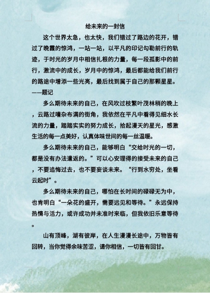 本次征文寄语活动增强了学生对未来的规划意识,使同学们对自己的大学生活乃至以后的人生树立清晰明确的目标,同时可以从中汲取面对生活中困难的勇气,以青春自信的姿态勇敢前行。