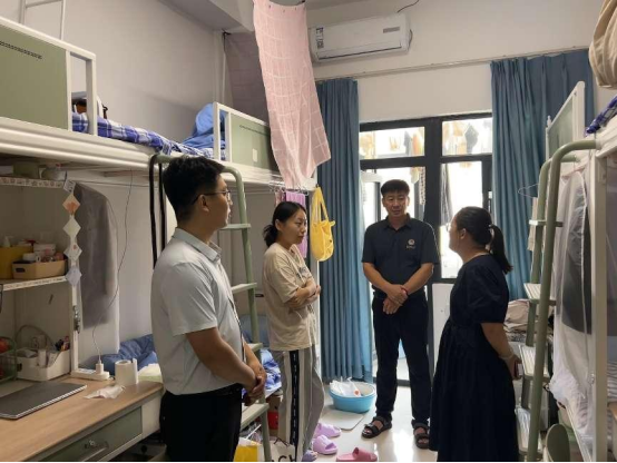 党委副书记季中、团委书记李宴美、辅导员王旭深入学生宿舍调研宿舍一站式服务相关工作,对学生学习生活状态、宿舍情况等进行走访,给予学生关心、关爱、关怀。