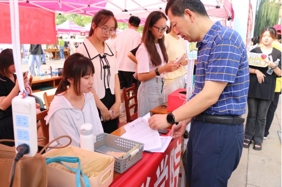 学院领导来到迎新现场后,向工作人员询问新生报到情况并检查相关工作,并对奋战在迎新第一线的工作人员和志愿者进行慰问,嘱咐他们要以饱满的热情做好迎新服务工作,做到有序、热情、高效,从细微处入手,营造细心周到的氛围,为初来乍到的新生提供“一站式”报到服务,让新生与家长深切感受到“家”的温暖。随后,学院领导与前来报道的新生们亲切交谈,叮嘱他们遇到困难要及时寻求老师的帮助,希望他们能够尽快融入校园生活,涵养品格,勤奋努力。