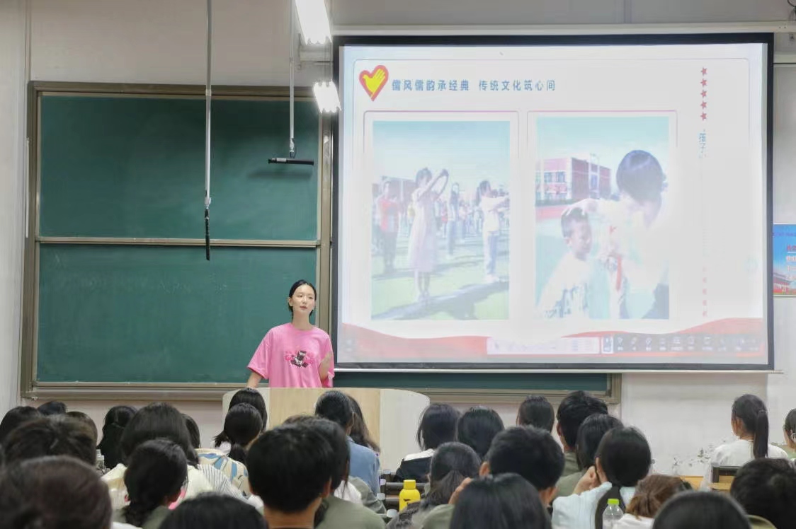 会议伊始,校团委志愿者宣讲团针对西部计划向同学们进行简单介绍,让同学们对西部计划有了初步的认识。随后,宣讲团成员从个人亲身经历出发,用幽默的语言和生动有趣的故事详细叙述了自己是如何通过西部计划从一名在校大学生成为一名支教干部,激发了同学们对西部支教的兴趣。宣讲团成员告诉同学们:西部支教不仅锻炼自身,也开阔视野 ,丰富自身经历,对学习与生活都有很大帮助。最后,宣讲团发出号召,鼓励同学们参加西部计划,积极投身祖国建设。