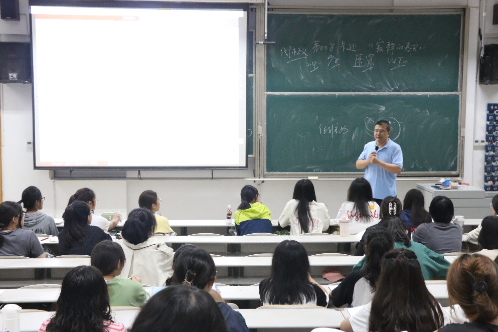副院长赵翔华带领同学们对统计学和应用统计学人才培养方案进行了详细解读,帮助同学们认识理解学科发展、课程体系、学制学分以及课程考核的基本内容。同时,他强调了学好专业基础和提升自我学习能力的重要性,希望同学们养成自我管理的好习惯。最后,他引用王国维《人间词话》中的为学三境,表达了对大一新生的诚挚祝愿,希望同学认真学习、刻苦钻研、反复追寻,早日达到为学第三境界。