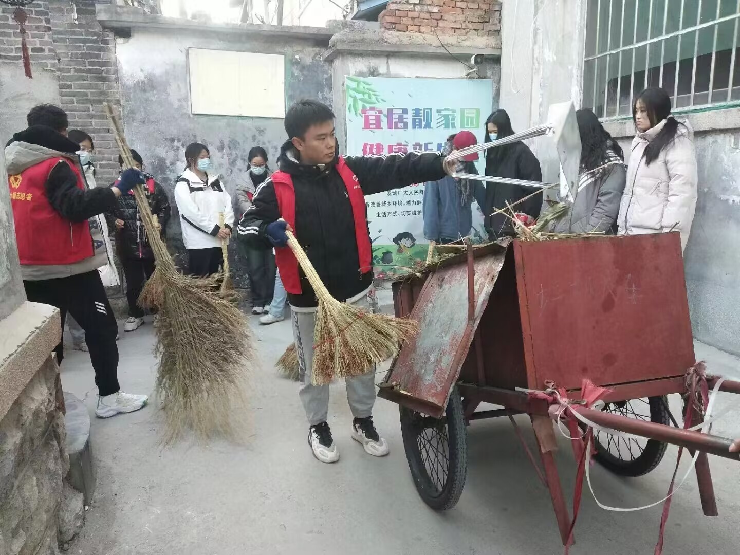 志愿者们与社区居民于11月26日在阙里社区开展社区卫生志愿活动。