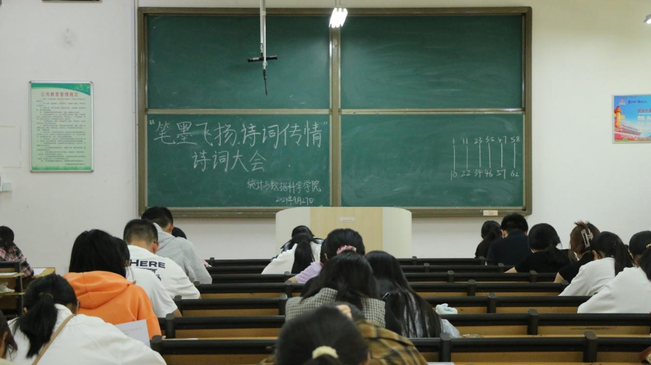 于2024年9月27日下午2点半在西联教室三成功举办“笔墨飞扬,诗词传情”诗词大会,各年级学生积极参加。