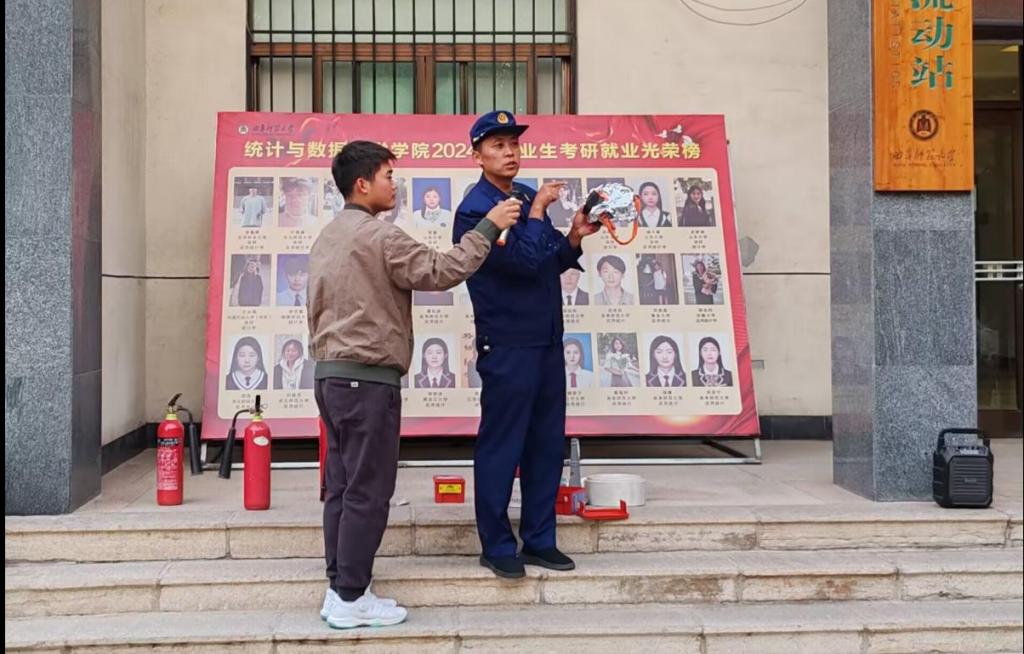 紧接着,曲阜市消防大队刘元利队长以“宣讲+实操”的形式,向同学们宣传消防知识并进行器材讲解,增强了大家对于灭火器等消防器材的操作使用技能,以便在火灾紧急情况中更好地保障个人安全。