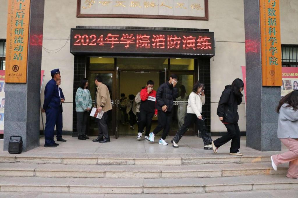 党委书记石倩、党委副书记季中、副院长赵翔华、工会主席尤洪龙、办公室主任张红云出席本次消防演练活动。活动由学院团委书记李宴美主持,师生代表参加。