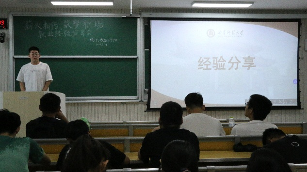 于5月21日下午在格物楼B221室举办了就业经验分享会,邀请了2025届优秀毕业生分享他们的就业经验。此次会议由就业实习服务部干事宋田禾主持,2022级、2023级同学参加。