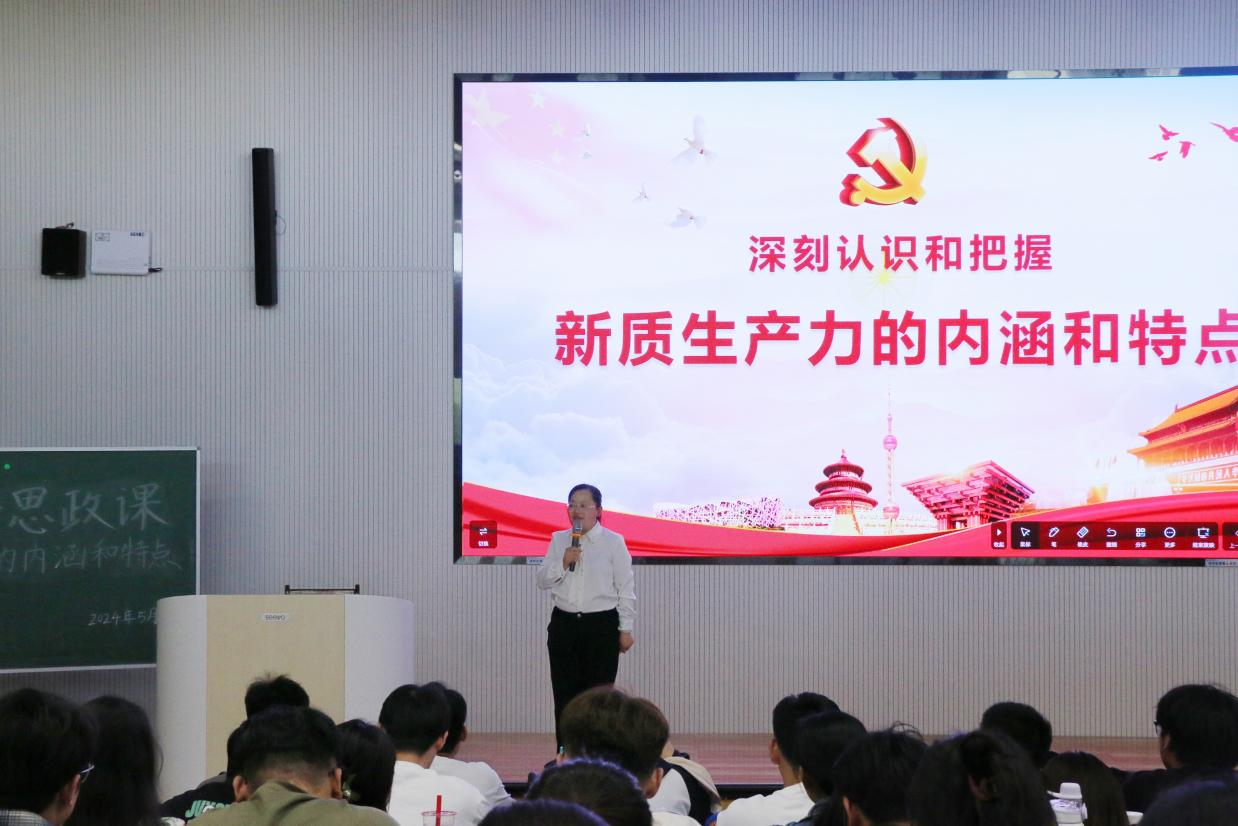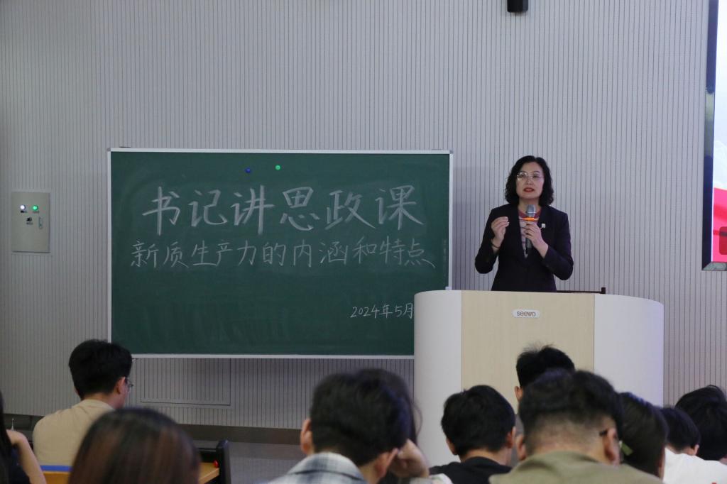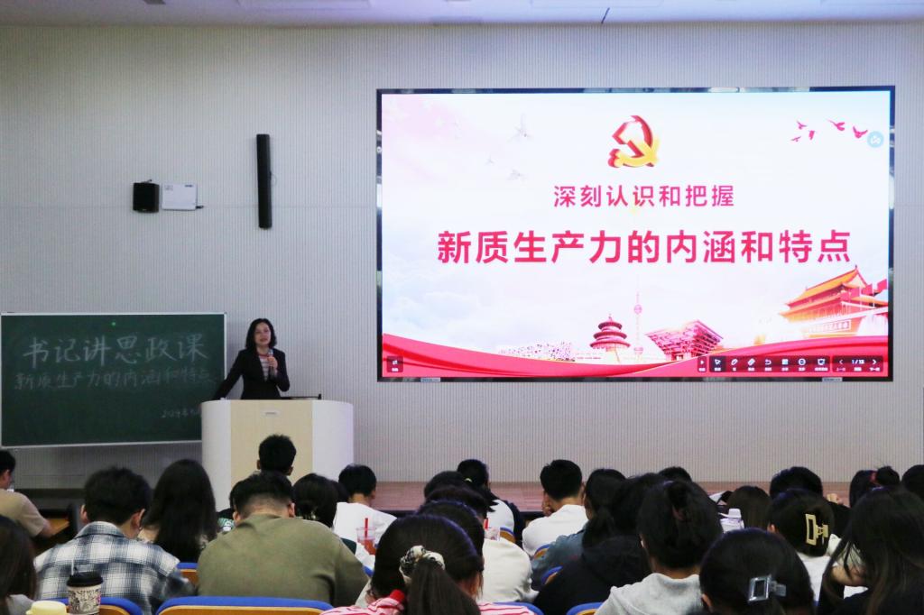 党委书记石倩为学生讲授题为《深刻认识和把握新质生产力的内涵和特点》的专题思政课,学院团委书记李宴美主持活动,动漫a片