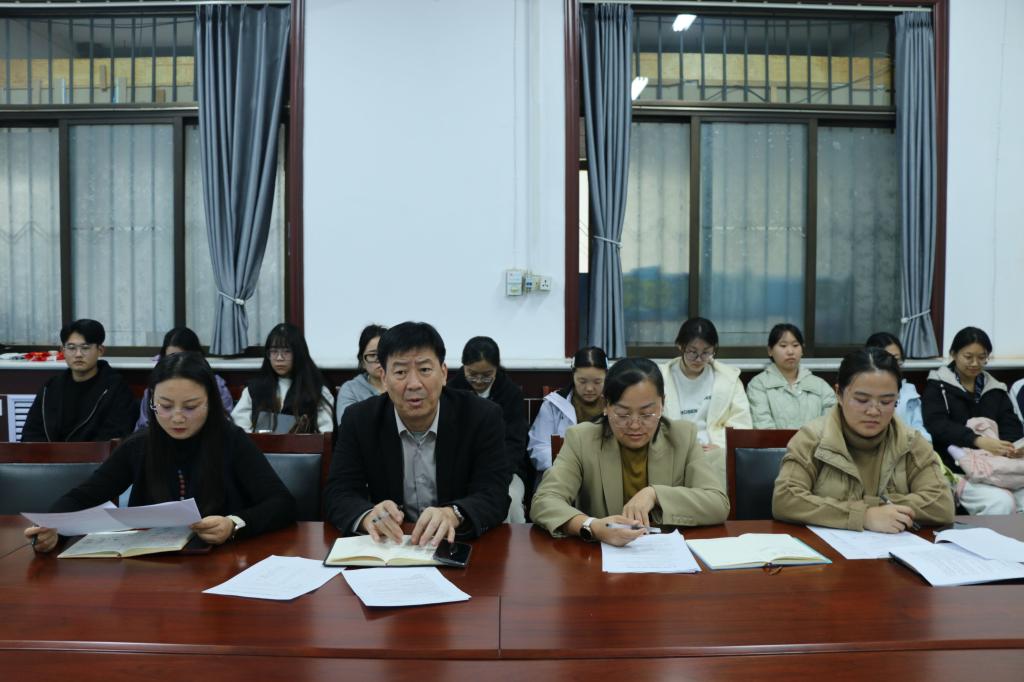 会议伊始,季中同志带领全体参会人员深入学习领会习近平总书记在庆祝中华人民共和国成立 76 周年招待会上重要讲话精神。围绕“实现中华民族伟大复兴是前无古人的伟大事业”这一核心,重点解读讲话中关于“党领导人民自力更生、接续奋斗取得彪炳史册辉煌成就”的重要论述,强调要从新中国 76 年发展历程中汲取精神力量,牢记“只争朝夕、永不懈怠的奋斗精神”,引导全体党员深刻认识新时代青年党员的使命担当,切实将讲话精神转化为提升党性修养、强化责任意识的思想自觉与行动自觉,为后续党支部工作开展筑牢思想根基。随后,经过党支部党员讨论确定发展对象的条件。接着,培养联系人季中和李文静依次介绍王鹤臻、万曼晖两位发展对象的情况。