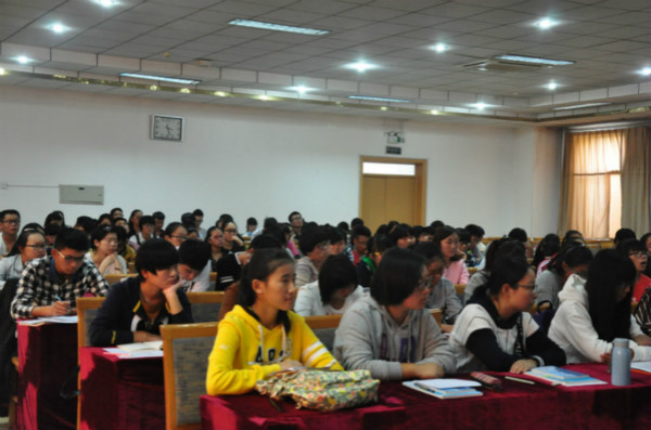 院长、博士生导师尹传存教授致辞。尹院长首先对2015级新生的到来致以热烈的欢迎和亲切的问候。接着,他向新生们介绍了学院和专业的总体情况,就学科评估、专业评估,中国经济学学位的发展做出讲话。副院长赵胜利教授在接下来的讲话中对统计学与应用统计学的就业前景作了客观介绍,鼓励同学们要好好学习专业课知识,打好基础,为将来的就业做好充分准备。大会第三项,教务员刘艳丽老师对选课、考试等一系列规章制度进行了讲解,这些对大家过好大学生活有很好的指导意义。最后,团委书记刘永礼老师对本次60周年校庆期间的安全问题做了嘱咐,提醒同学们要礼貌待人,用微笑迎接每一位来校的校友。