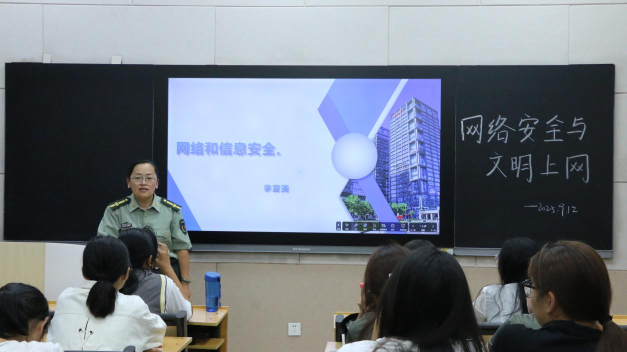 于2025年9月12日在老文史楼开展网络安全与文明上网主题班会。全体2025级新生参会,会议由2025级辅导员李宴美主讲。