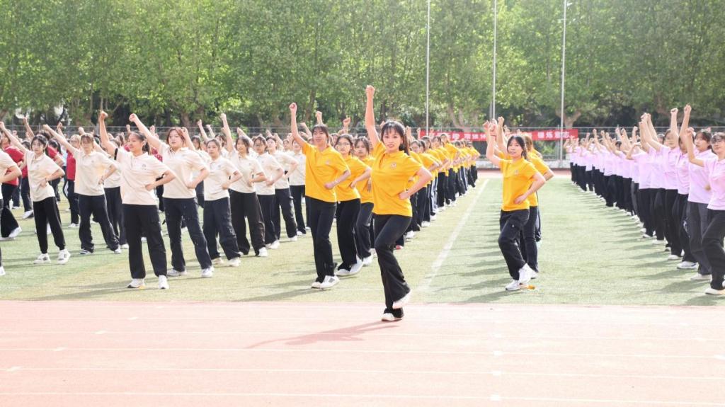 代表队高举院旗,步伐矫健,响亮的口号声回荡在整个操场。“统计万象,数据领航,精研数据,志在远方”,字字铿锵有力,充分展现出统计学子朝气蓬勃的青春活力与积极向上的精神面貌。在会操表演环节,统计学子以饱满的热情、抖擞的精神登场。他们身着统一的服装,在动感欢快的音乐声中翩然起舞,动作整齐划一尽显青春风采。彰显出统计学子昂扬向上的精神风貌,为现场观众献上了一场精彩纷呈、极具感染力的表演,赢得了阵阵热烈的掌声。