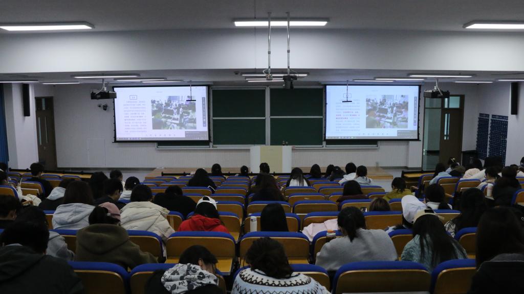 在致知楼B101分会场参加培训。学院党委副书记季中、团委书记李宴美、研究生辅导员管阳、2023级辅导员李祥敏、2024级辅导员李文静以及各宿舍舍长、学生会宿管部成员参加此次培训。