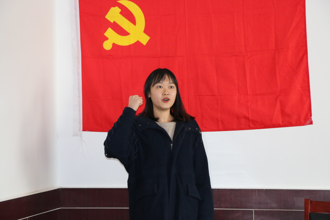 四、由转正党员王峥,王庞博同志进行庄严的入党宣誓并发言,表达了自己的奋斗目标以及今后要更加严格要求自己、努力达到党员标准的决心。