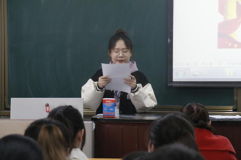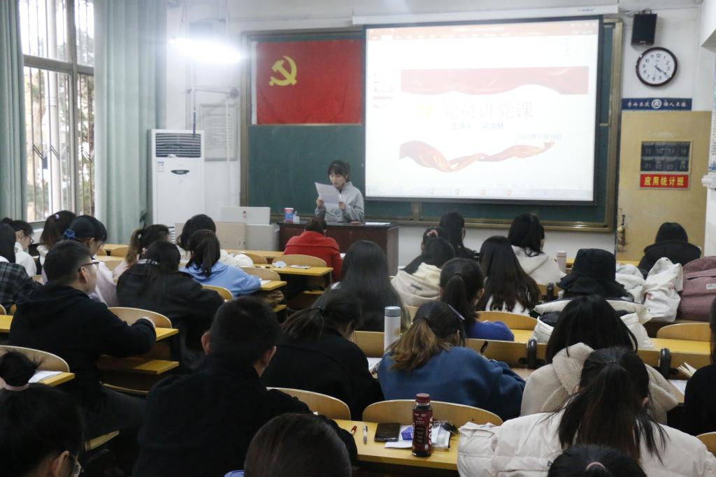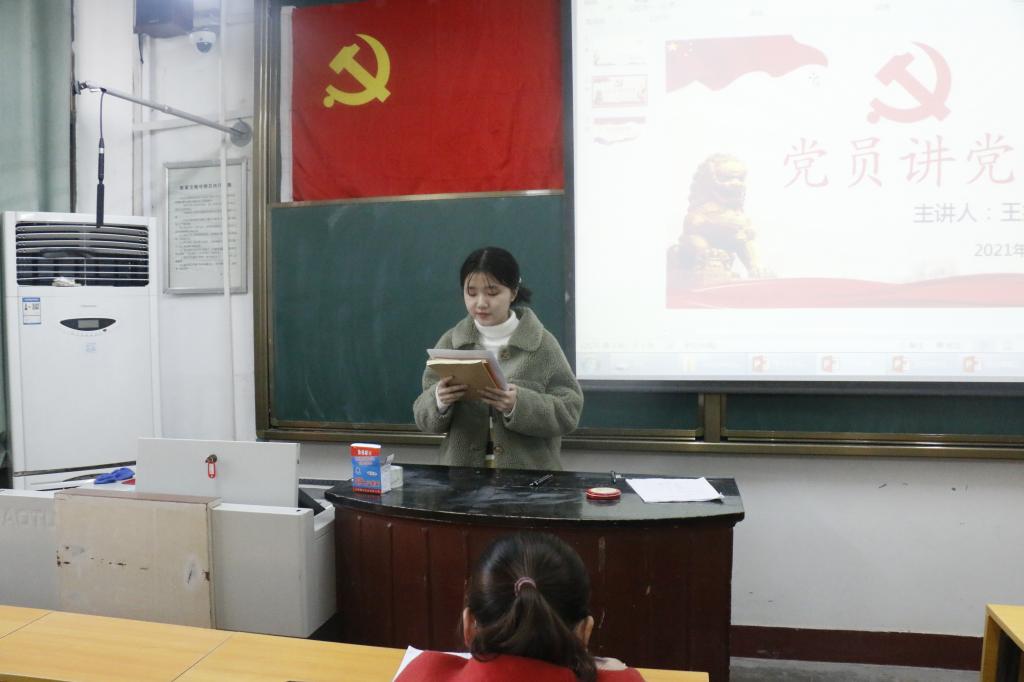 111教室举办“党员讲党课”活动。本次活动特邀2018级赵未名,王笑涵,梁佳慧三位党员同志进行党课宣讲,本科生党支部全体党员及预备党员到会聆听。