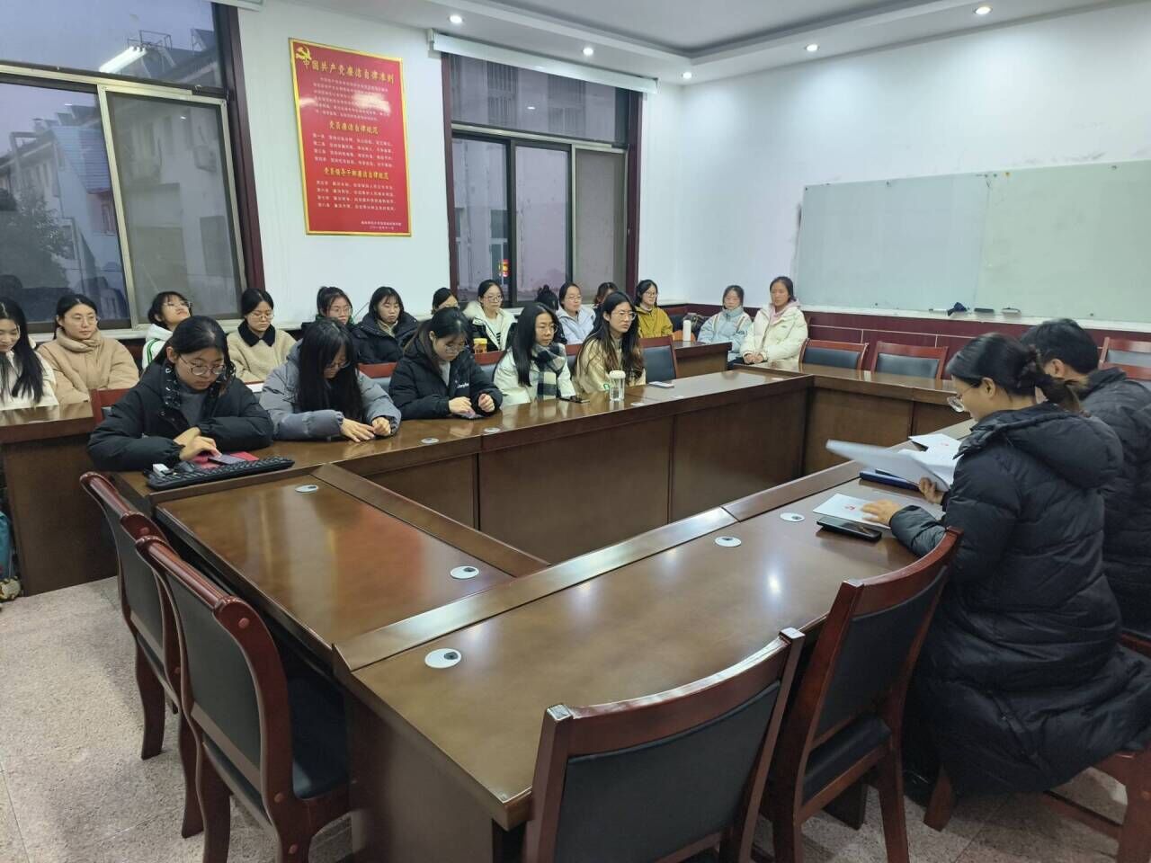 首先,李宴美老师领学了“习近平新时代中国特色社会主义思想的世界观和方法论”,重点阐述了“六个必须坚持”、“两个结合”“三个提法”和研究问题解决问题的总钥匙。李宴美老师指出,各位党员和预备党员运用好贯穿其中的立场观点方法,坚持守正创新。最后,季中书记对本次会议作出总结,季中书记表示希望同学们加强理论学习,坚持读原著学原文悟原理,多思多想,对习近平新时代中国特色社会主义思想内容努力做到整体把握、融会贯通。