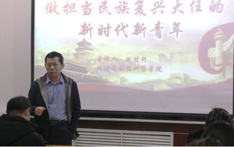 院长赵胜利教授为全院研究生以“做担当民族复兴大任的新时代新青年”为主题讲思政课。研究生辅导员孙涛和全体研究生共上本次思政课。