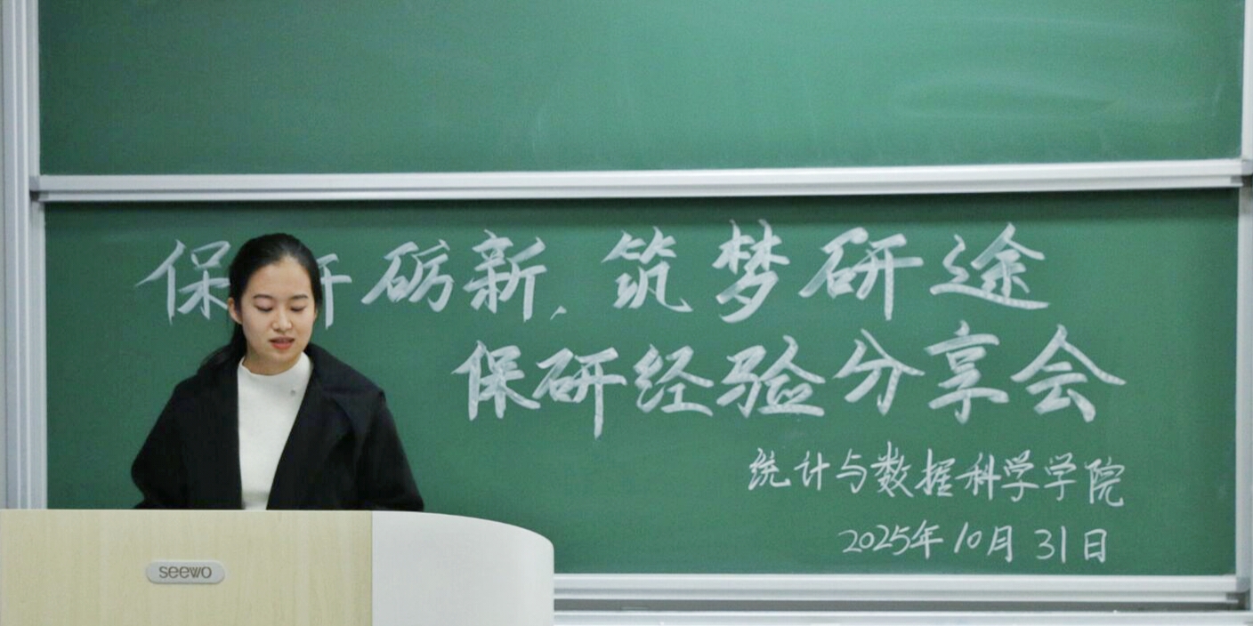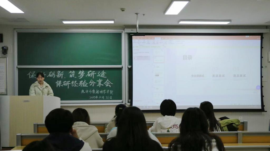于2025年10月31日在格物楼B218教室举办“保研砺新,筑梦研途”保研经验分享会。本次会议由2022级李擎、宋美怡、梅一平、王佳琪主讲,2025级王馨、康紫瑶主持,2023级、2024级部分同学参加。