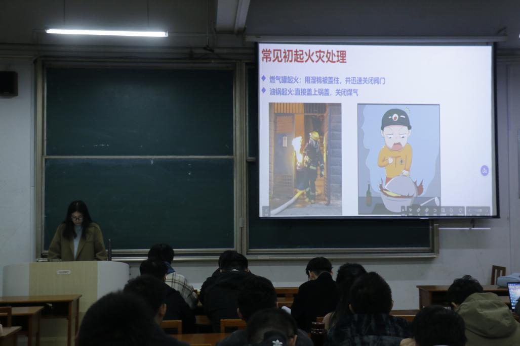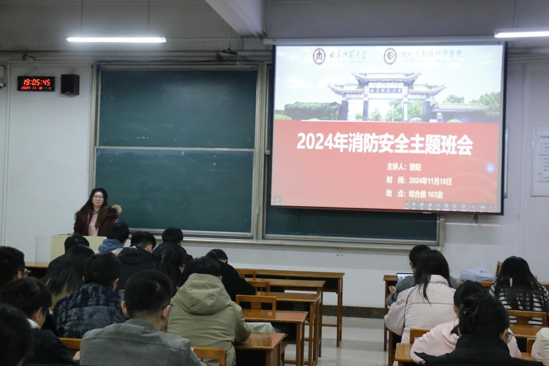 面向全院研究生在综合楼103室举办了一场消防安全主题班会。此次班会旨在提高研究生的消防安全意识,科普火灾预防措施、火灾处理方法、火场逃生自救技巧,确保生命财产安全。班会由研究生辅导员管阳老师和2024级统计学学硕班团支书丁宁共同主讲。