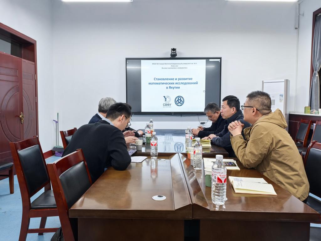 座谈中,瓦西里院士介绍了雅库特地区数学研究的发展历程与科研现状,展示了包括多尺度数学建模、非均质介质模拟、人工智能与计算技术等方面的研究成果,并分享了其在国际科研合作与高水平人才培养方面的经验。瓦西里院士长期从事计算数学与物理过程数学建模研究,是俄罗斯数学建模领域的重要学术带头人,曾获得“俄罗斯联邦友谊勋章”“萨哈共和国科学技术国家奖”等多项殊荣。
